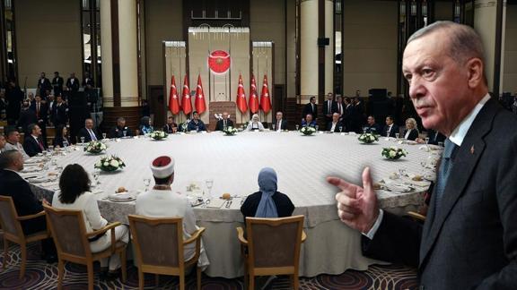 Başkan Erdoğan, Cumhurbaşkanlığı Külliyesi Sergi Salonu'nda "Emeğin, Sendikal Örgütlenmenin ve İstihdamın Geleceği" temasıyla düzenlenen 13. Çalışma Meclisi Yemeğine katıldı.