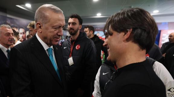 Başkan Erdoğan, Kocaeli Stadyumu'nda oynanan Türkiye-Gürcistan maçının ardından Türkiye A Milli Futbol Takımı oyuncularını ve teknik heyetini tebrik etti.