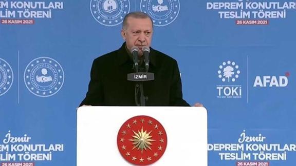 İzmir depreminin ardından Bayraklı'da 1391 konut, 392 dükkan için harekete geçtik. İzmir depreminin 5071 konut, 354 konut yapma kararı aldık. Bugün sözümüzü tutuyor, ilk etap evleri ve dükkanları depremzedelere teslim ediyoruz. Bizler AK Parti'yiz. Bizler söz verir, sözümüzü tutarız.