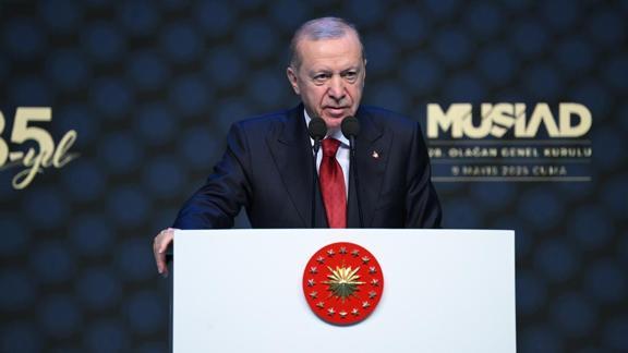 Başkan Erdoğan, 35 yıldır MÜSİAD'la beraber yol yürümekten kıvanç duyduklarını, MÜSİAD'ın ülke, millet, demokrasi ve insanlık değerleri adına yürüttüğü mücadelesine her zaman destek olduklarını ve gelecekte de bir ve beraber olacaklarını söyledi.