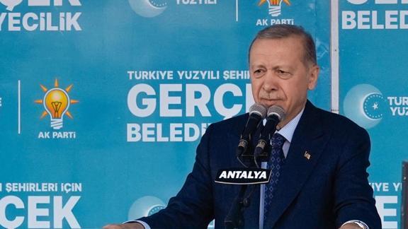 Cumhur İttifakı olarak büyükşehir ve ilçe adaylarıyla Antalya'ya hizmete talip olduklarını söyleyen Erdoğan, genel seçimlerde kendilerine cumhurbaşkanlığında yüzde 43, milletvekilliğinde ise yüzde 41 oy veren Antalyalılara teşekkür etti.