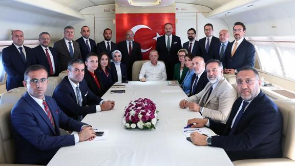 Başkan Erdoğan, Brezilya ziyareti dönüşü uçakta aralarında Murat Çiçek'in de bulunduğu gazetecilerin sorularını cevapladı, değerlendirmelerde bulundu.