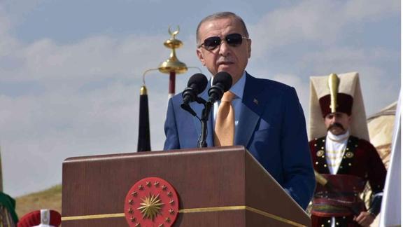 AA'da yer verilen habere göre, Başkan Erdoğan, Malazgirt Zaferi'nin 951'inci yıl dönümü dolayısıyla Ahlat'taki etkinlik alanını ziyaretinde konuştu.