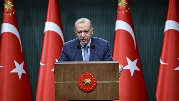 Cumhurbaşkanlığı Külliyesi'ndeki Kabine Toplantısı'nın ardından millete seslenen Erdoğan, dünya sisteminde tarihi kırılmalar yaşanırken siyaset kurumunun da buna uygun olarak Türkiye merkezli hareket etmesi gerektiğini belirtti.