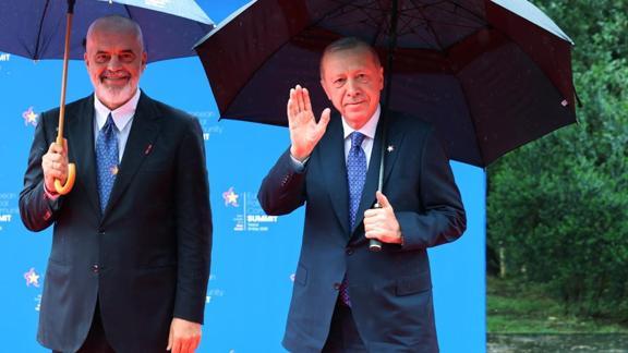Arnavutluk Başbakanı Rama, Erdoğan'a zirvenin oturumlarının yapılacağı Opera Binası'na kadar eşlik etti.