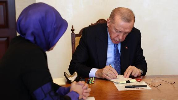 Başkan Recep Tayyip Erdoğan, Türk Kızılay Genel Başkanı Fatma Meriç Yılmaz'ı İstanbul'da kabul etti. Başkan Erdoğan, kurban bağışını Türk Kızılay'a yaptı.
