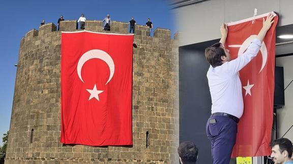 TARİHİ DİYARBAKIR SURLARI'NA TÜRK BAYRAĞI ASILDI