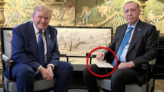 Basına kapalı gerçekleşen görüşme öncesi gazetecilere poz veren Başkan Erdoğan ve Trump'ın fotoğrafı gündem oldu. İki liderin neşeli anları objektiflere yansırken Cumhurbaşkanı Erdoğan'ın elindeki zarf ise merak konusu oldu.