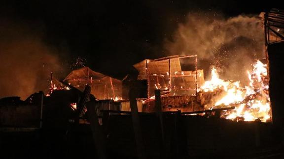 Bayburt'ta çıkan yangında 3 ev, 6 ahır, 4 samanlık, 3 tandır evi ve traktör kullanılamaz hale geldi.
