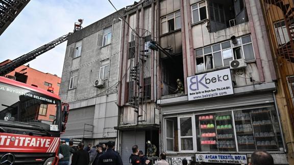 Terazidere Mahallesi Funda Sokak'taki 3 katlı çorap imalathanesinde bilinmeyen nedenle yangın çıktı.