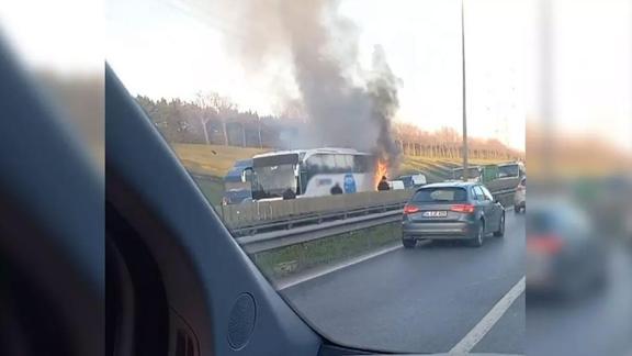 Yangın, saat 09.00 sıralarında TEM Otoyolu Metris Bağlantı Yolu'nda seyir halinde olan bir yolcu otobüsünde meydana geldi.