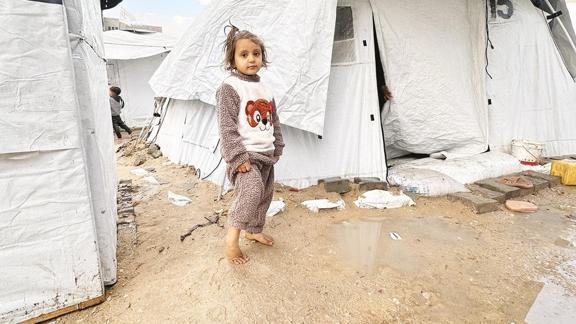 İsrail'in havadan ve karadan saldırılar düzenlediği Gazze'de zorla evleri boşaltılan Filistinliler, ağır yıkım nedeniyle derme çatma çadırlarda, yağmur ve fırtına nedeniyle zor günler geçiriyor. Birleşmiş Milletler (BM) verilerine göre, İsrail saldırıları nedeniyle Gazze'de her 10 kişiden 9'u yerinden edildi. Gidecek yerleri kalmayan Filistinliler, sığındıkları El-Mevasi'de açlık, susuzluk ve dondurucu soğuk altında yaşam savaşı veriyor. Dondurucu soğuklarla beraber, 2 milyon yerinden edilmiş Filistinli, insani bir felaketle karşı karşıya.