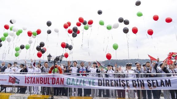 Denizcilik meslek lisesinin üniformalı öğrencilerinin bu anlamlı etkinliğe katılarak hem tarihi bir farkındalık oluşturduğunu hem de denizciliğin asaletini, disiplinini ve dayanışma ruhunu en güzel şekilde temsil ettiğini dile getiren Yentür, "İzleyeceğimiz Filistinli öğrencilerimizin dabke dansı, bayrak seremonisi, balonların gökyüzünde yükselişi hepimiz için barış ve umut mesajı veriyor." dedi.
