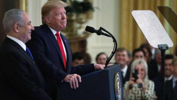Trump, İsrail Başbakanı Binyamin Netanyahu ile Beyaz Saray'da düzenlediği ortak basın toplantısında, tek taraflı Orta Doğu barış planını kamuoyuna açıkladı.