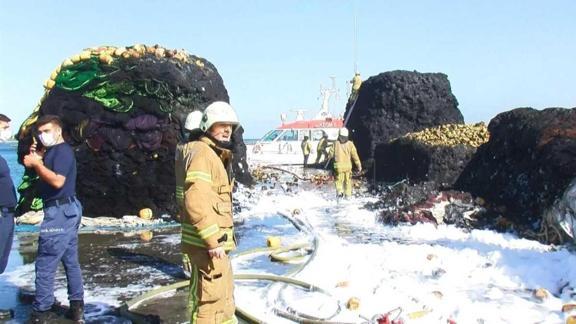 Beylikdüzü Su Ürünleri Hali'nde balıkçı ağları alev alev yandı. İtfaiye ekipleri yangını kısa sürede söndürdü.
