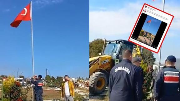 Sosyal medyada paylaşılan videoda, yaşanan arbede sırasında bir Jandarma personelinin direkteki bayrağı indirmek için uğraştığı, o sırada bir kadının, "O bayrak oradan inmeyecek, onları bıçaklarım." şeklinde ifadeler kullanarak engellemeye çalıştığına dair görüntüler yer aldı. Bazı siyasetçiler görüntülerin Hatay'da olduğunu öne sürdü.