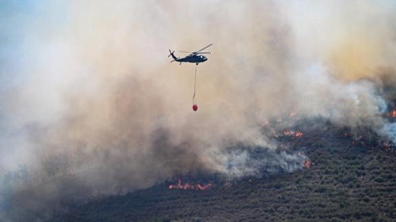 Türk Silahlı Kuvvetlerine (TSK) ait helikopterler de söndürme çalışmalarına destek veriyor.