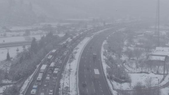 Anadolu Otoyolu'nun Bolu Dağı geçişinde tipi şeklinde etkili olan kar yağışı nedeniyle ulaşımda aksamalar yaşanıyor. Yoğun kar ve düşük görüş mesafesi sebebiyle otoyolda aralıklarla trafik kazaları meydana gelirken, kazalar nedeniyle yol zaman zaman kısmen trafiğe kapatılıyor. Karayolları ekiplerinin hızlı müdahalesiyle kazaların yaşandığı bölgelerde yol kısa sürede yeniden ulaşıma açılırken, küreme ve tuzlama çalışmalarının daha hızlı ve güvenli şekilde yürütülebilmesi için jandarma ekipleri otoyolu belirli aralıklarla trafiğe kapatarak kontrollü geçiş sağlıyor.
