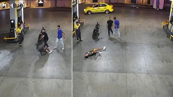 Tartışmanın büyümesi üzerine şahıslardan biri Ayyıldız'ın kafasına yumruk attı. Ayyıldız yere düşüp bayılırken Serdar D. ve Enes G., motosiklet ile kaçtı. Tüm bu anlarda ise akaryakıt istasyonunda çalışan görevlinin yaşananları film gibi izlemesi dikkat çekti. İhbar üzerine bölgeye polis ve sağlık ekipleri sevk edildi.