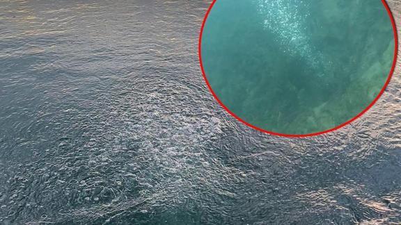 Dalgıçlar suya dalarak kabarcıkların çıktığı bölgeyi su altı kamerasıyla kayda aldı.