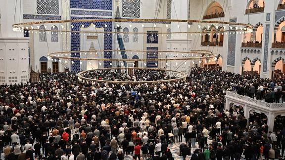 İstanbul'da Kur'an-ı Kerim'in indirilmeye başlandığı ve "bin aydan hayırlı" olarak kabul edilen Kadir Gecesi'ni idrak etmek için Büyük Çamlıca Camisi'ne gelen vatandaşlar namaz kılıp dua etti.
