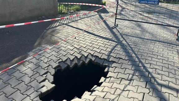 İlçeye bağlı Hamdibey Mahallesi Sakallı Sokak'ta bulunan yolda henüz belirlenemeyen nedenle çökme meydana geldi.