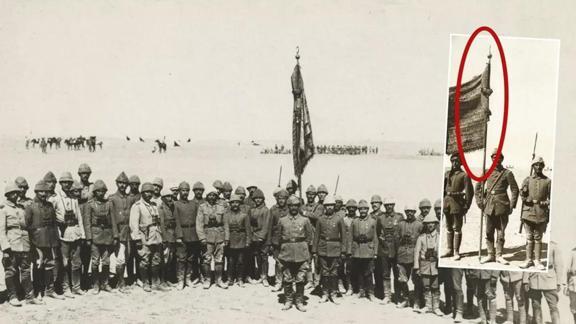 Çanakkale Zaferi'nde yer alan birliklere verilen kurdelenin 125. Alay'a ait sancakta da yer aldığı görülüyor.