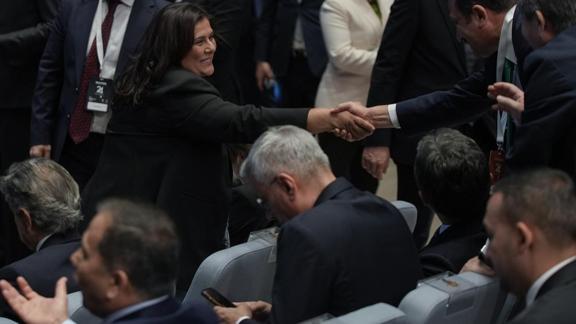 Özlem Çerçioğlu, AK Parti'nin 24. Kuruluş Yıl Dönümü Programı'na katılmak üzere kongre binasına geldi.