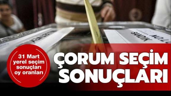 Çorum seçim sonuçları bölge halkı tarafından yakından araştırılmaya devam ediliyor. 31 Mart 2019 yerel seçimlerinde Çorum Belediye Başkanlığı için AK Parti’den Halil İbrahim Aşgın, Cumhuriyet Halk Partisi’nden Özgür Kılıç, İYİ Parti’den Bilgi Terlemezoğlu, MHP’den Kenan Şahin aday oldu. Çorum'da resmi olmayan sonuçlara göre AK Parti'nin Çorum Belediye Başkanı Halil İbrahim Aşgın seçimin galibi oldu. Resmi olmayan sonuçların açıklanmasının ardından AK Parti'li seçmenler, kentteki Gazi Caddesi üzerinde yer alan Saat Kulesi yanında toplandı. Çorum’un Sungurlu, Alaca, Mecitözü, Osmancık, Bayat, İskilip, Oğuzlar, Uğurludağ ilçelerinin sonuçlarını da ayrıntılı olarak seçim sonuçlarınızdan öğrenebilirsiniz.