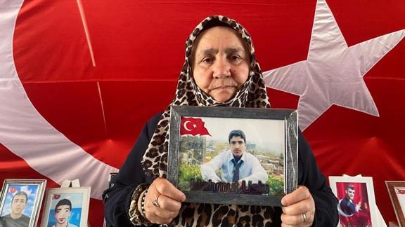 Ellerinde çocuklarının fotoğrafıyla bekleyişini sürdüren annelerden Bedriye Uslu, 14 yıl önce kandırılarak dağa götürülen oğlu Mahmut için eylem yaptığını söyledi.