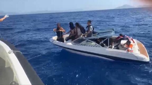 Muğla Datça açıklarında sürüklenen bottaki 10 düzensiz göçmen kurtarıldı.