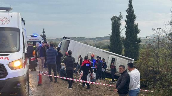 Sürücüsü öğrenilemeyen 35 CEJ 948 plakalı günübirlik tura katılanları taşıyan midibüs, Bölmekaya Mahallesi yakınlarında şarampole devrildi.