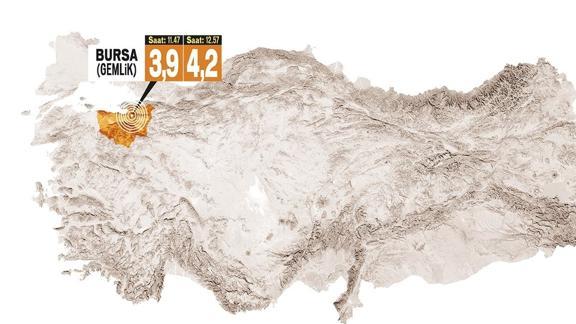 AFAD'ın verilerine göre, dün saat 11.47'de merkez üssü Gemlik ilçesi olan 3,9 büyüklüğünde sarsıntı kaydedildi. Çevre illerde de hissedilen depremin yerin 9,82 kilometre derinliğinde meydana geldiği belirlendi. Bursa Gemlik'te saat 12.57'de 4.2 büyüklüğünde bir deprem daha meydana geldi. İstanbul ve çevre illerde de hissedilen depremin yerin 10.14 kilometre derinlikte meydana geldiği belirlendi. İçişleri Bakanı Ali Yerlikaya, depremlerle ilgili, 'Herhangi bir olumsuzluk yok' açıklamasında bulundu.