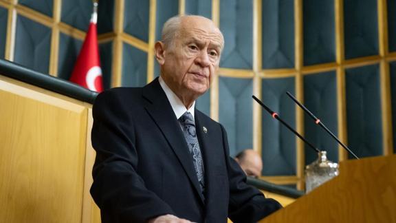 Bahçeli, Türkiye'nin sınırlarının hemen yanı başında yuvalanan terör örgütünün sökülüp atılmasından rahatsız olan DEM Parti'nin nerede duracağını henüz kestirememesinin, terörle arasına mesafe koymaktan sürekli imtina etmesinin yanlış, demokrasi ve hukuk dışı bir çarpıklık olduğunu söyledi.
