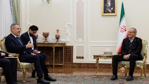 Dışişleri Bakanı Hakan Fidan, İran Cumhurbaşkanı Mesud Pezeşkiyan tarafından Tahran'da kabul edildi.