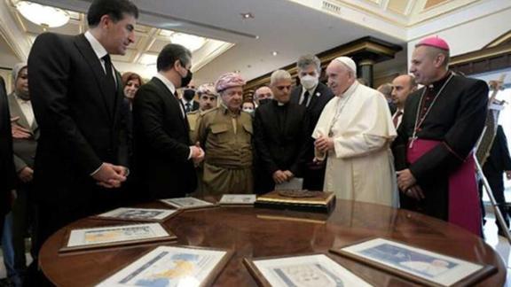 Papa Francis'e bizzat tanıtımını Barzani ailesinin yaptığı pullardan birinde, Papa Francis figürünün arka fonunda görülen haritaya, Türkiye'nin birçok doğu ve güneydoğu ili Irak Kürt Bölgesel Yönetimi'ne dahil edildiği görülmüştü.