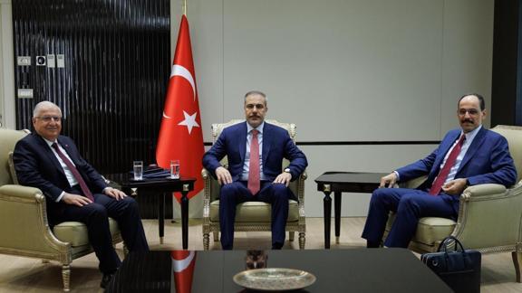 Dışişleri Bakanı Hakan Fidan, Milli Savunma Bakanı Yaşar Güler ve Milli İstihbarat Teşkilatı (MİT) Başkanı İbrahim Kalın ile Dışişleri Bakanlığında bir araya geldi.