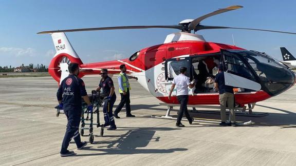 Bunun üzerine ilçeye yönlendirilen ambulans helikoptere alınan hasta, Van Eğitim ve Araştırma Hastanesi'ne nakledildi.