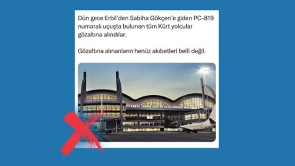 DMM'nin resmi X hesabından yapılan açıklamada, "Bazı basın yayın organlarında yer alan, "Erbil'den, Sabiha Gökçen'e yapılan bir uçuşla ilgili yolcuların gözaltına alındığı" iddiası doğru değildir.