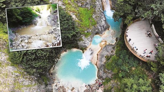 Giresun Dereli'deki Kuzalan Tabiat Parkı'nda yer alan ve görenleri mest eden turkuaz rengiyle dikkat çeken Mavi Göl, bu yıl zamansız yapılan dere ıslah çalışmasıyla eski görünümünü kaybetti. Sodalı suyun geçtiği dere yatağında yapılan düzenleme çalışmaları sırasında suyun doğal akışı bozuldu, çamur ve tortu göle karıştı.