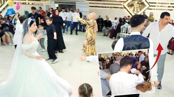 Kimseyi tanımadığı halde düğün salonuna girip, takım merasimine katılan Sinan E. başkasının sandığa koyması için uzattığı parayı alıp, bu parayı sandığa koyuyor gibi yaparken, sandık içindeki 60 bin lirayı çıkartarak uzaklaştı. 7 saniye süren hırsızlık, düğünden 10 gün sonra izlenen kamera kayıtlarıyla ortaya çıktı. Tutuklanan Sinan E. ifadesinde, "Baktım düğün var, içeri girdim, pasta yedim. Paraları görünce dayanamadım çaldım" dedi.