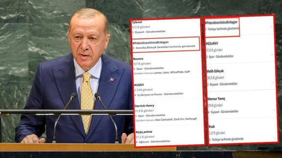 Başkan Recep Tayyip Erdoğan'ın BM kürsüsünde yapacağı açıklamalar öncesinde X platformunda #PalestinesVoiceErdogan etiketi dünya gündeminde TT oldu.