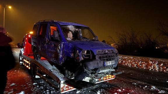 Yurtbaşı beldesi yolunda sürücüsünün kimliği henüz öğrenilemeyen 20 Y 6981 plakalı hafif ticari araç, buzlanmanın etkili olduğu yolda refüjdeki aydınlatma direğine çarptı.
