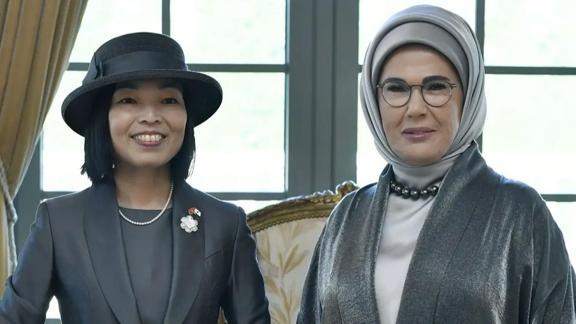 Emine Erdoğan, bir dizi program için Türkiye'ye gelen Mikasa'yı Cumhurbaşkanlığı Devlet Konukevi'nde ağırladı.