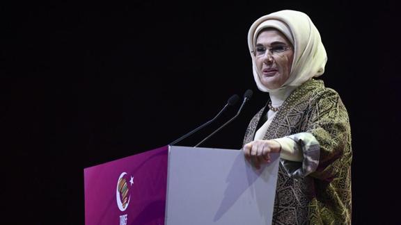 Erdoğan, savaş, soykırım, iklim değişikliği ve yoksulluk başlıklarının hala küresel gündemin ilk sıralarında yer aldığının altını çizerek, "Dünyanın artık gerçekten de yeni bir hikayeye ihtiyacı var. Şahsen bu hikayenin, kadınların kalemiyle yazılacağı kanaatindeyim. Her gün bir kadın, dünyanın bir köşesinde harika bir fikri gerçeğe dönüştürüyor. Bu fikirler tıpkı karda açan kardelenler gibi en zor şartlarda bile insanlığa umut aşılıyor. Küresel sorunlara çözüm üretiyor, barış kültürünü besliyor çünkü kadınlar, doğal liderlik özelliklerine sahiplerdir. Nesiller onların elinde yetişir, gelecek o nesillerle şekillenir. Bu yüzden, ekonomik hayata katıldıklarında, sadece kendilerini değil, toplumlarını da ileri taşırlar." diye konuştu.