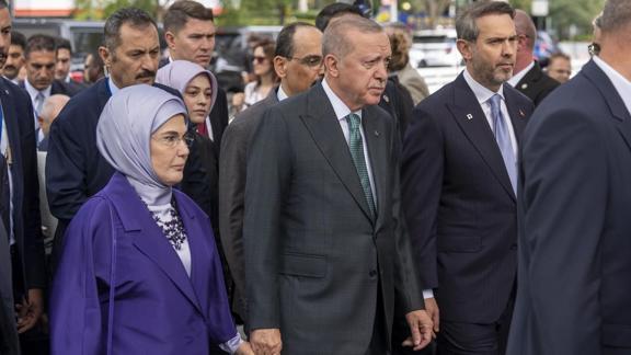 Emine Erdoğan, Türkevi'nden birlikte yürüyerek geçtikleri BM Genel Merkezi'nde Başkan Recep Tayyip Erdoğan'ın, BM'nin 80. Genel Kurulu'nda yaptığı konuşmayı salonda dinledi.