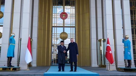 Endonezya Cumhurbaşkanı Prabowo Subianto'yu Başkan Recep Tayyip Erdoğan ile görüşmek üzere Cumhurbaşkanlığı Külliyesi'ne geldi.
