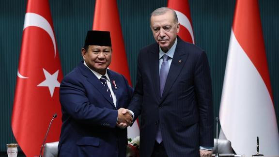 Erdoğan, Cumhurbaşkanlığı Külliyesi'nde, baş başa ve heyetler arası görüşmenin ardından Endonezya Cumhurbaşkanı Prabowo Subianto ile ortak basın toplantısı düzenledi.