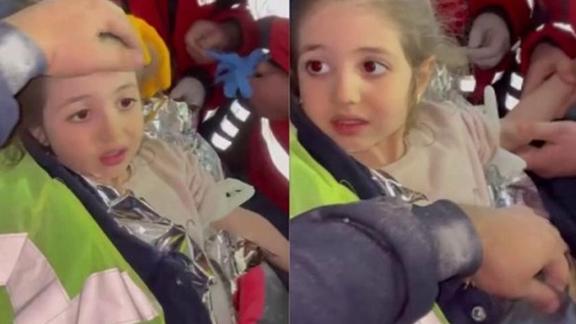 Küçük kız, kendisini kurtaran ekiplerin su isteyip istemediği sorusuna, "Yok daha muayene olmadım." karşılığını verdi.