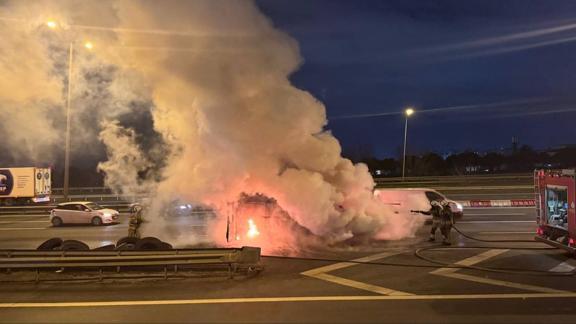 TEM Otoyolu Esenyurt mevkisi Edirne istikametinde seyreden, içinde otomobil lastiği bulunan M.Ç. idaresindeki 34 GC 9439 plakalı panelvan tipi minibüsün ön kısmında, henüz bilinmeyen nedenle yangın çıktı.